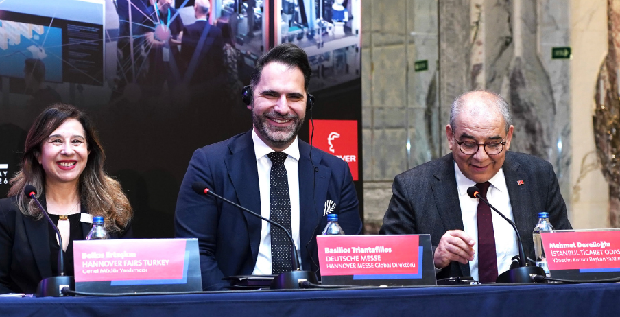 HANNOVER MESSE Istanbul Basın Toplantısında konuşan HANNOVER MESSE Küresel Direktörü Basilios Triantafillos, “Sektörden gelen katılımcılar, HANNOVER MESSE’de bu hızlı endüstriyel dönüşüm aşamasında şirketlerin nasıl başarıya ulaşabileceğine tanık olabilecekler. Makine mühendisliğinden otomotiv ve elektrik endüstrilerine kadar farklı sektörlerin üst düzey yöneticileri fuarda geniş bir yelpazede verimlilik, sürdürülebilirlik, dayanıklılık ve rekabetçiliği destekleyen çözümler bulacak. Bu kapsamda HANNOVER MESSE, otomasyona dayalı dijital ve yapay zekâ odaklı fabrikaya giden yol haritasını gözler önüne serecek. Elektrik mühendisliği, makine mühendisliği, dijital ve enerji sektörlerinden 3 binden fazla şirket, yapay zekânın önemli bir rol oynadığı günümüzün ve geleceğin üretim ve enerji tedarikine yönelik çözümlerini sergileyecek” dedi.